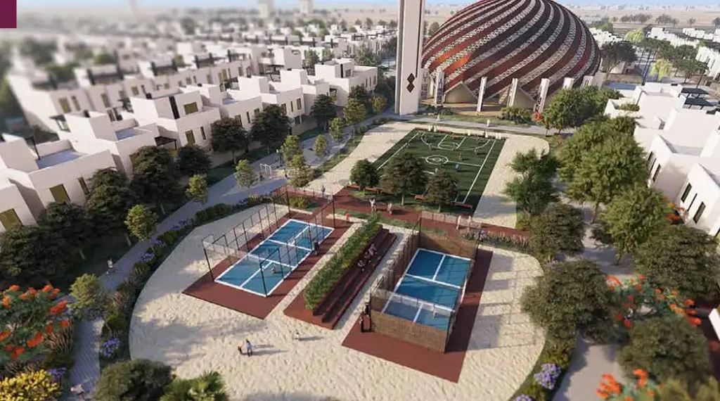 Community Amenities: The development includes integrated sports fields, community lawns (Murooj), and the signature Hai Majd Mosque.